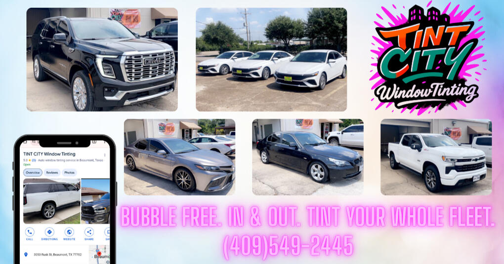 409.549.2445TINT CITY Window Tinting delivers premium films for cars, homes, and businesses, blocking heat, reducing glare, and adding sleek style. Over 20 yrs of experience.